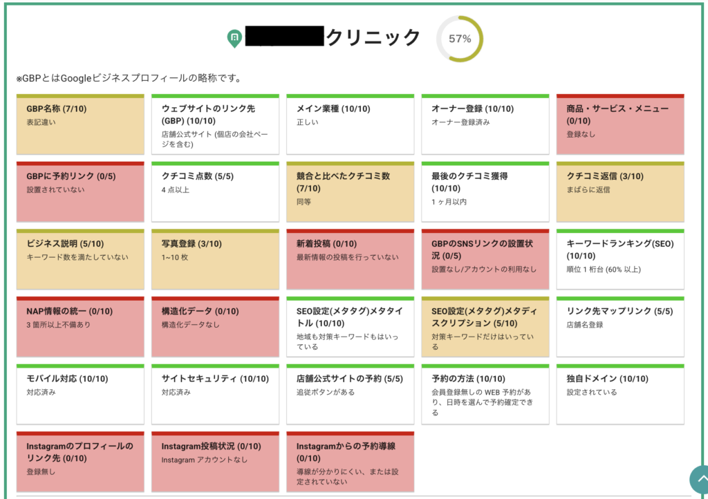 【 対策できている部分・伸び代がある部分を点数で診断し、改善点を可視化します】