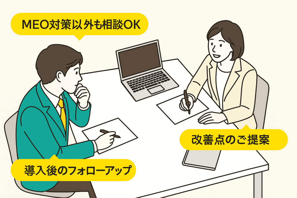 - ツールのレクチャーやMEO・集客に関するご相談も契約期間中は無期限でフォローアップ